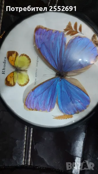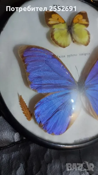 Хербаризирани пеперуди от о-в Родос Голямата /р-р на крилата 12см./ - СИНЯ МОРФА НА МЕНЕЛАЙ е ценен колекционерски екземпляр !