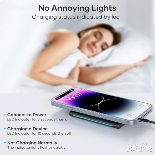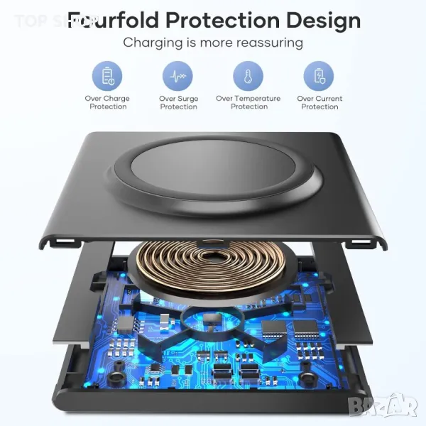 V6 15W безжично зарядно за iPhone 14/14 Pro Max/13/13 Mini/13 Pro Max/12/12 Pro/11, Samsung Galaxy → Обява 48543619