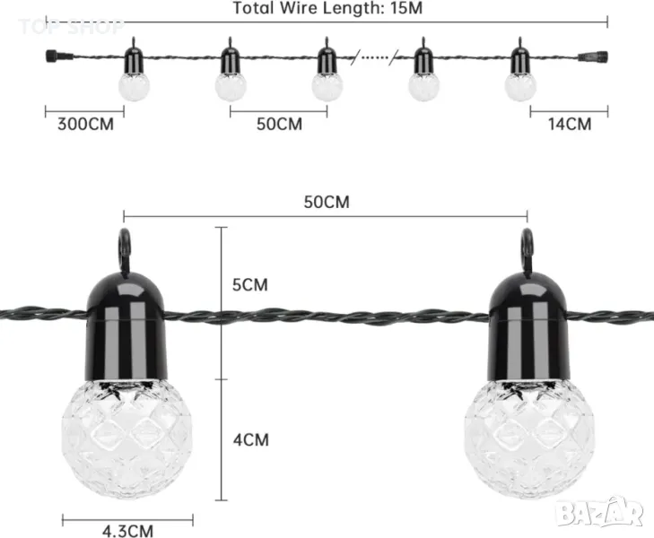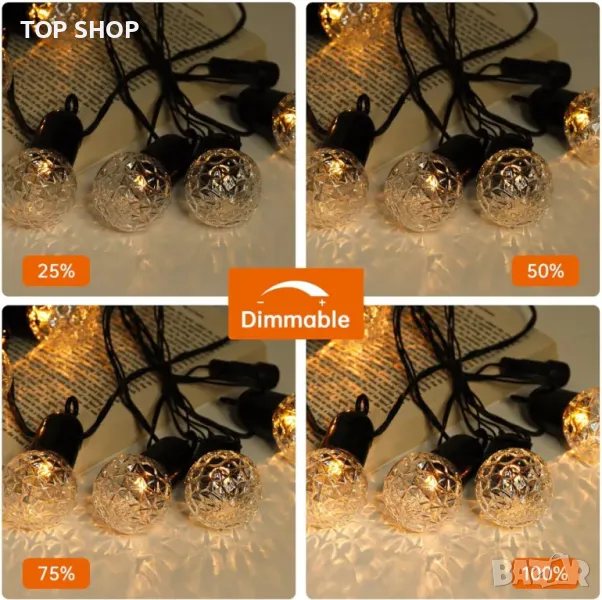 ★IP44 Водоустойчив за открито★ Външните нишки за осветление могат да издържат на дъжд или екстремни температури на слънце. Вместо традиционните изкуствени светлини се използват висококачествени LED светлини. LED крушките произвеждат по-малко топлина и издържат по-дълго от волфрамовите лампи. Изработена от издръжлива пластмасова колба вместо крехка стъклена крушка, тя няма да се счупи дори при изпускане.