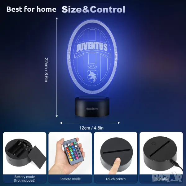 HooJtny Juventus Lamp, Juventus Football Nightlight, 3D Boy LED Lamp, Juventus, 16 цвята