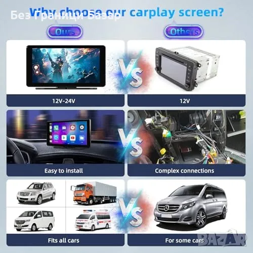 Нов Преносим CarPlay екран с GPS, Bluetooth и FM 7 инча CarPlay и Android Auto