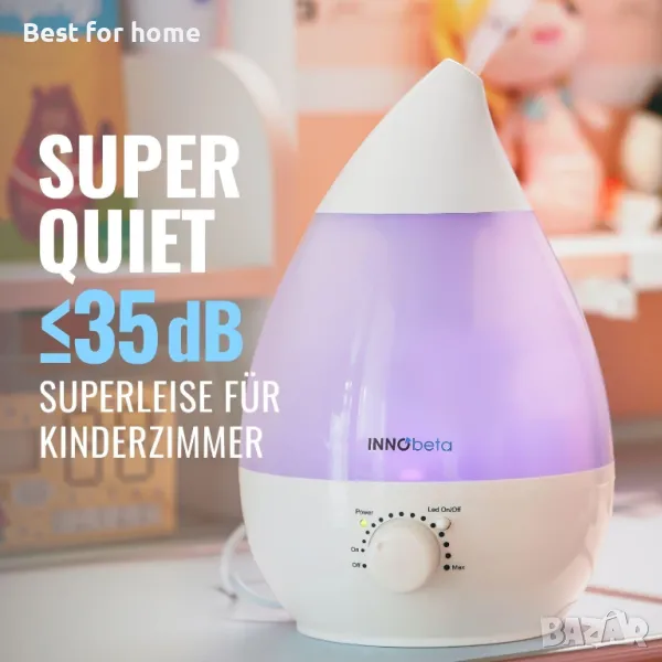 СУПЕР ТИХ - Използвайки ултразвукова технология, овлажнителят INNObeta Waterdrop 2.0 работи тихо, което ви позволява да спите и работите спокойно.