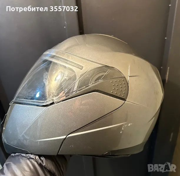 Каската е чисто нова, докарана от Германия, но при транспортирането има няколко драскотини за това и цената е такава! Каската не е ползвана ! Размер S модуларна със слънчеви очила