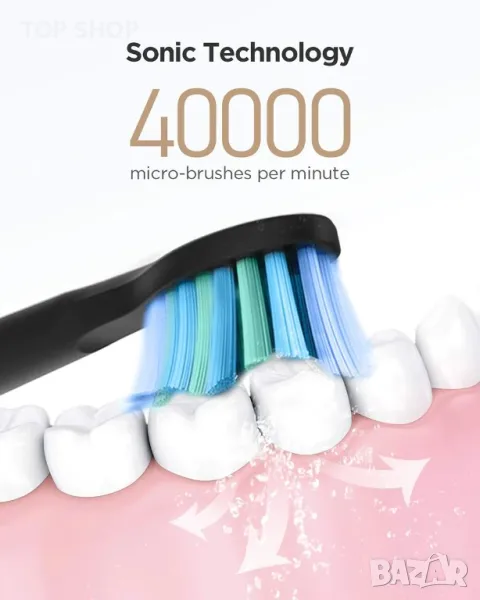 С мощна ултразвукова технология, тази четка доставя ръчни движения с четка за по-малко от две минути повече от месец. Мощните звукови движения превръщат пастата за зъби в микромехурчета, като ги влачат по линията на венците за дълбоко и нежно, ефективно почистване между зъбите. Премахва повече петна, но също така премахва съмнението в качеството на вашето четкане, наистина проектирано да работи. Като цяло подобрено изживяване при четкане в сравнение с обикновена електрическа четка за зъби.
