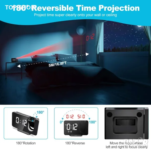 Функция за дрямка и двоен алармен часовник: Нашият алармен часовник с проектор може да зададе две отделни алармени часове едновременно, за да отговори на различните алармени часове за вас и вашето семейство. Можете също да зададете времето за дрямка според собствените си навици. Времето за дрямка на будилника е 9 минути.