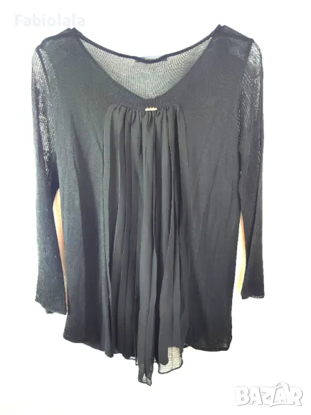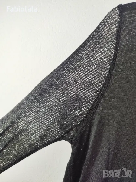 Плетено горнище с прозрачен гръб и ръкави. Размер L. Без етикет на материала. На допир е като памук. Гръден кош 94, дължина 70, рамо 40, ръкави 51. В много добро състояние Z79