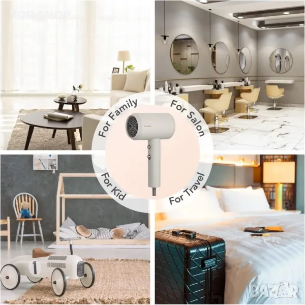 Лек материал и тих дизайн: оптимизирана и подобрена система от въздуховоди, нивото на шума е под 75 dB. Нашият сешоар осигурява приятна и тиха атмосфера. Сешоарът е лек и лесен за съхранение (тежи само 490 грама), прави ръцете ви спокойни и удобни. Лесно за носене. Идеален за пътуване и семейства.