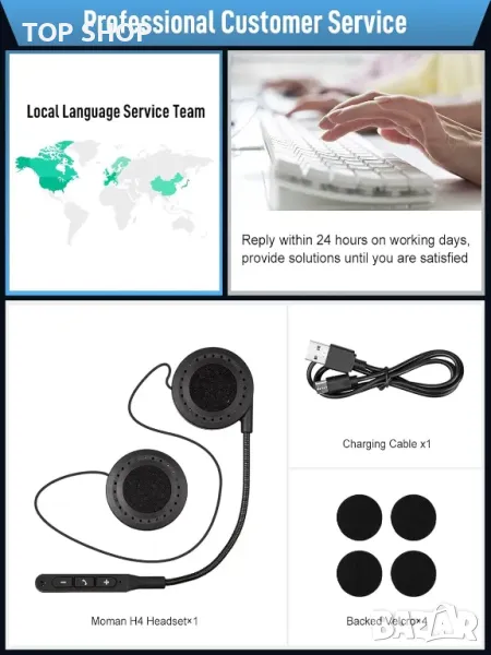 Слушалки за каска Moman H4 с говорител, високоговорител за безжична каска H4, водоустойчив, хендсфри, отговор на обаждане, управление на музика, спорт на открито за мотоциклет