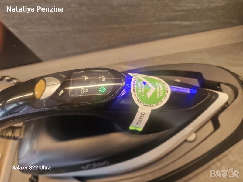 Център за гладене, който има супер пара от 400 g/min и постоянна пара от 130 g/min, които незабавно премахват най-упоритите бръчки.