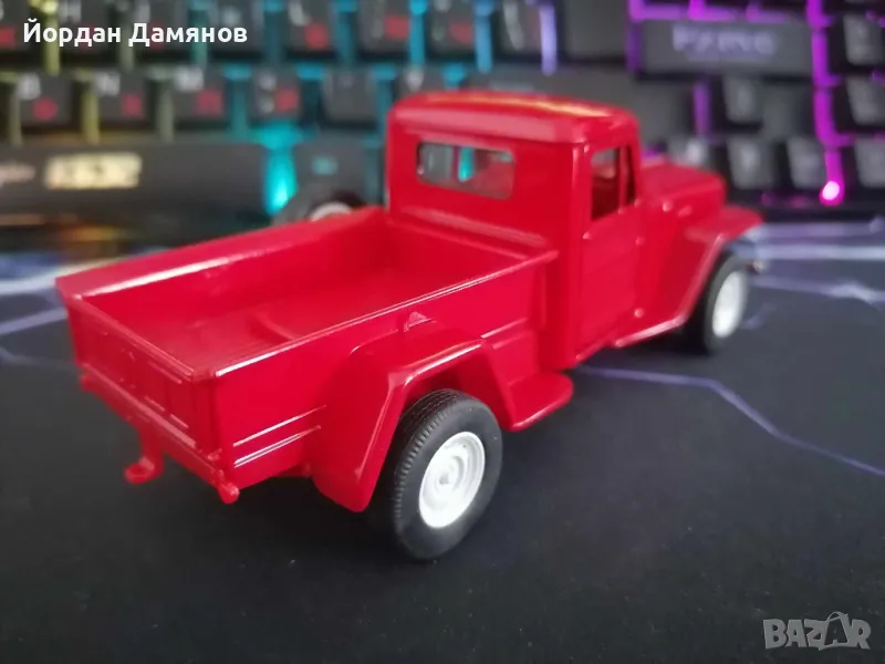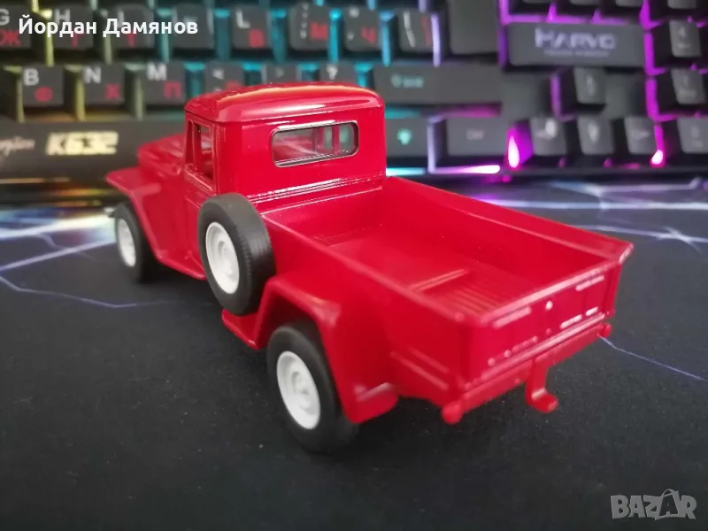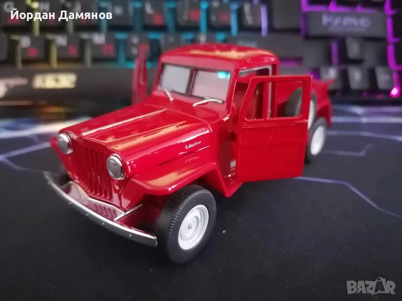 Джип Уилис '47 в мащаб 1:34 . Количката е чисто нова , извадена е от кутията само за снимките . За община Карнобат е възможно и лично предаване .