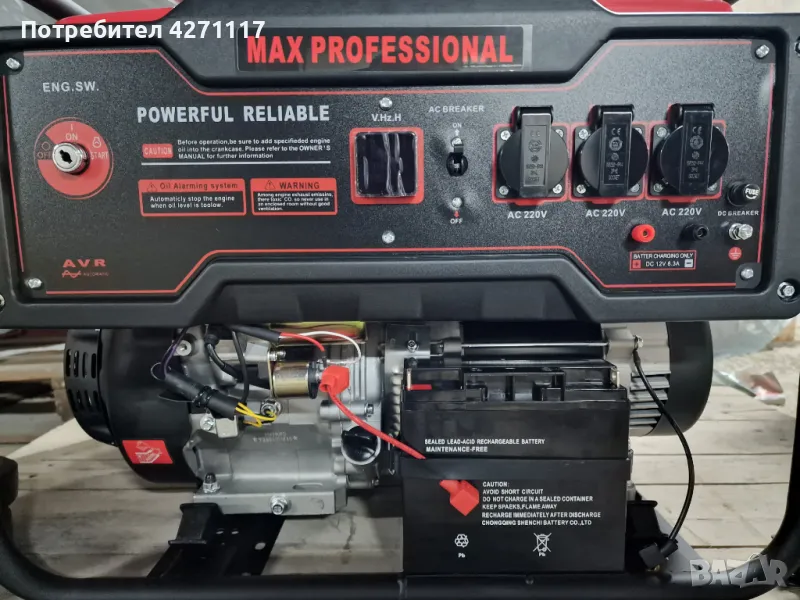 Генератора е със стартер и акумулатор както и има ръчно палене.