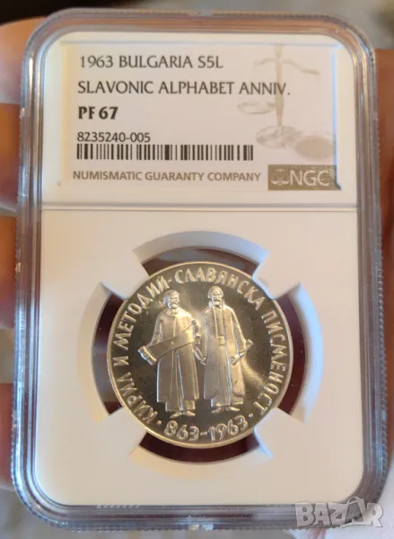 5 лева 1963 година Славянска Писменост NGC PF 67 → Обява 48546882