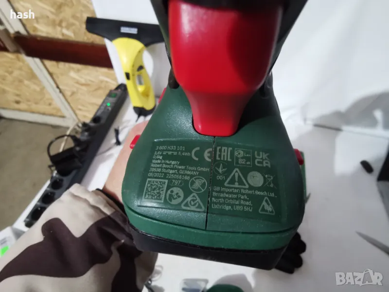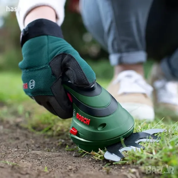 - Съдържание на кутията: Bosch Isio, издание на Amazon, зарядно устройство, нож за косачка multiclic 8 см, нож за храсти с много щракане 12 см, градински ръкавици XL
