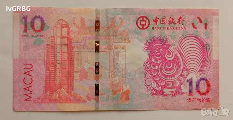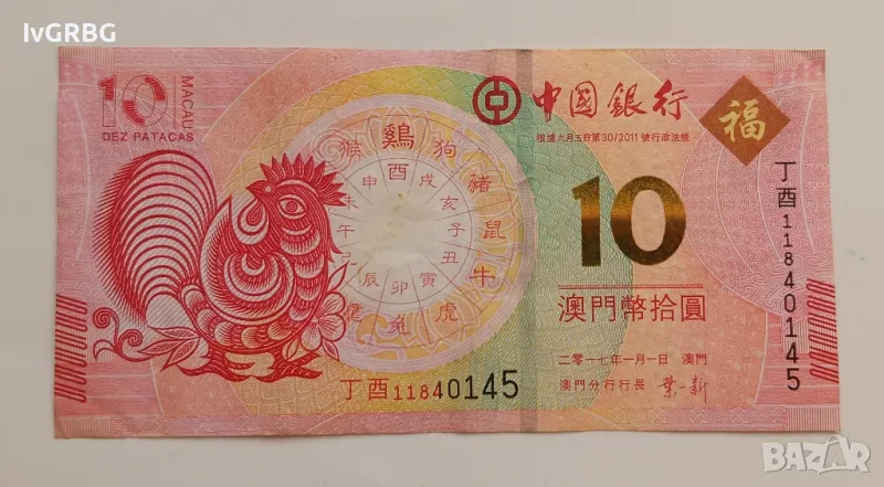 10 патака Макао юбилейна банкнота послучай годината на Петела 2017 година → Обява 48547396
