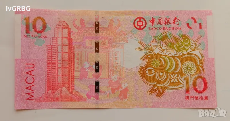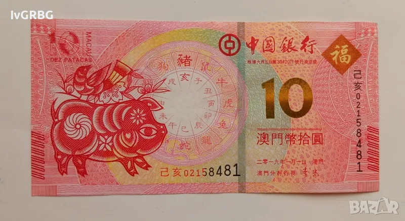 10 патака Макао юбилейна банкнота послучай годината на Прасето 2019 година → Обява 48547434