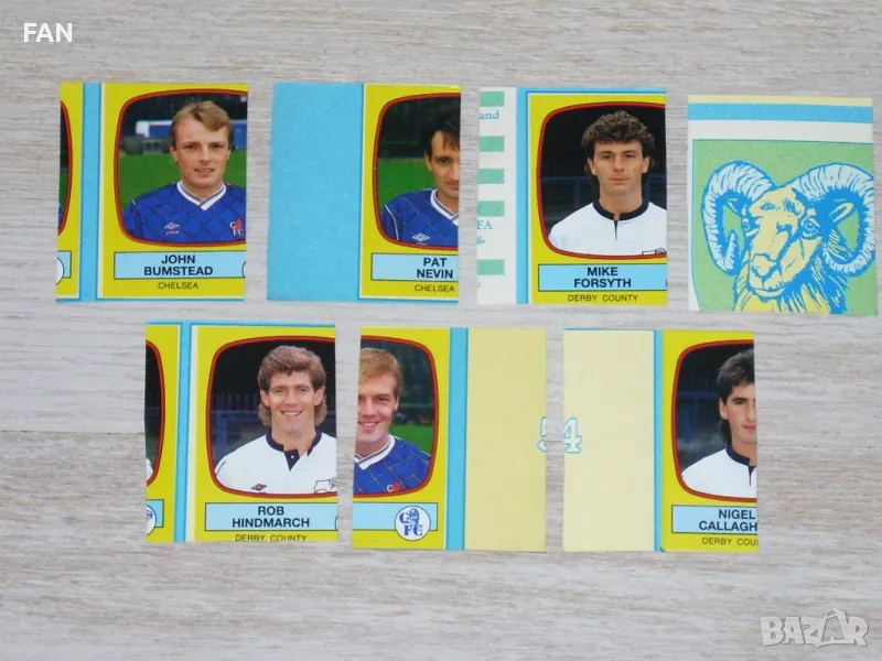 Стикерите са в добро състояние, но са изрязани от албум, където преди това са били залепени. По тази причина е възможно на обратната им страна да има части от други стикери.