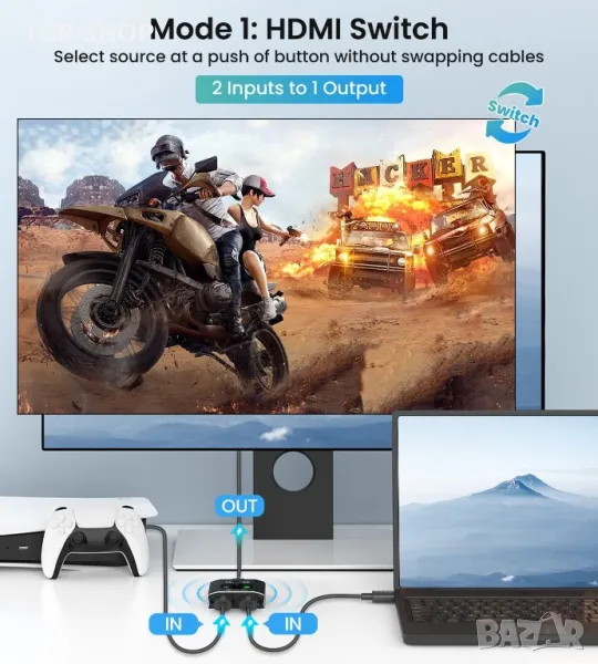 【БЪРЗО И СТАБИЛНО ПРЕХВЪРЛЯНЕ】 HDMI превключвателят осигурява предаване на данни с висока честотна лента от 18 Gbps, стандартната дължина на HDMI кабела AWG26 за вход и изход може да достигне до 5 м. 6,6 фута (2M) за 4k@60hz видео. Без забавяне, без загуба на качество на картина или видео. ✅HDMI кабел НЕ е включен.