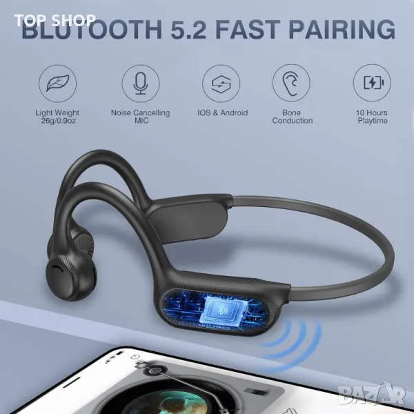 Слушалки Celsus Sound Bone Conduction с шумопотискащ микрофон, Bluetooth водоустойчиви спортни слушалки, стерео слушалки с отворено ухо до 8 часа време за игра, безжични слушалки за бягане и тренировка