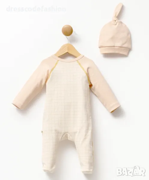 Предлага се в размери 0-3 месеца и 3-6 месеца. Комплектът включва и подходяща шапчица, която допълва стилната визия и осигурява допълнителна топлина.