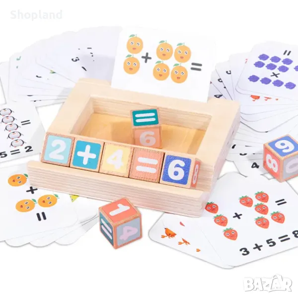 Тази дървена образователна игра с кубчета, цифри е идеалният начин да въведете детето си в света на числата и основните математически операции. Изработена от безопасни и екологични материали, тази игра е създадена да стимулира интереса към ученето чрез игра. С ярки цветове, разнообразие от цифрови елементи, тази играчка ще ангажира вниманието на малчуганите и ще ги насърчи да изследват и учат.