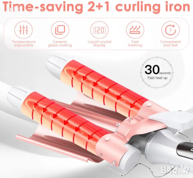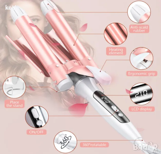 - Естествено бляскава прическа с къдрици: 32-милиметровите маши с 3 цилиндъра са идеалният инструмент за създаване на свободни, големи и красиви "S" вълни. Керамичното покритие на нашата преса за коса осигурява равномерна топлина, освобождавайки отрицателни йони. Намалете щетите и къдренето и подсилете блясъка.