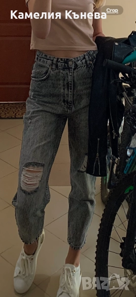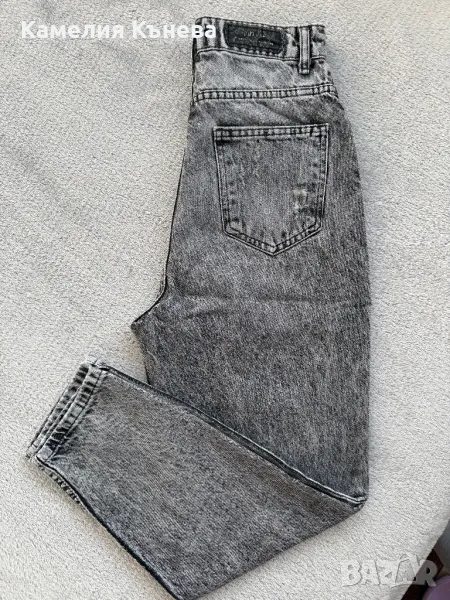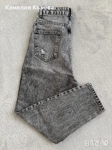 Сиви дънки с висока талия и накъсан ефект.