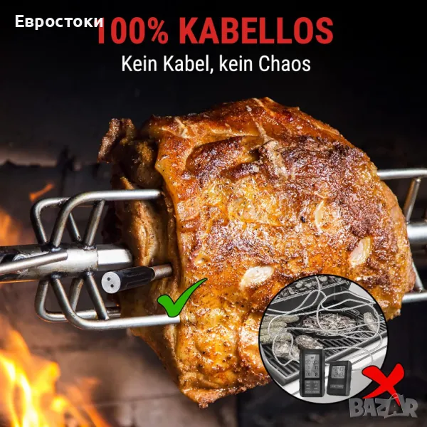 термометър за месо, безжичен, 150 m обхват, IP67, за печене, за фурна, грил, опушвач, въздушен фритюрник, подходящ за съдомиялна машина.
