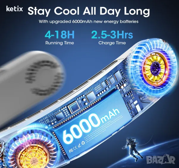 - 【Дълготраен живот на батерията】 Вградени акумулаторни батерии от 6000 mAh, енергийно ефективният капацитет на батерията поддържа вентилатора за врата да работи 4-18 часа (в зависимост от различните скорости) Нашият вентилатор за врата е съчетан с дизайн за бързо зареждане, което отнема само 2,5 часа, за да се заредите напълно, за да се насладите на силния въздушен поток в рамките на един ден.