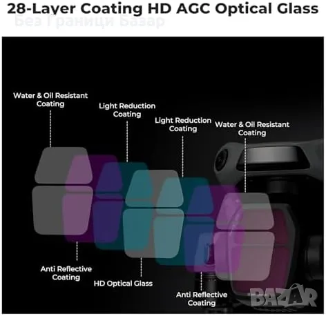28-слойно покритие за намаляване на отблясъци и подобряване на цветовете.