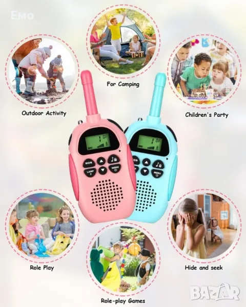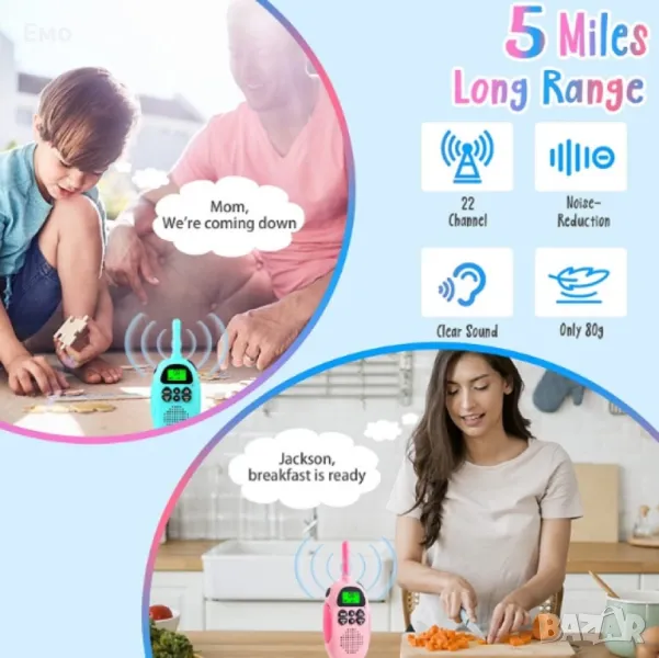 Комплект 2 броя Уоки-Токи за момичета и момчета - обхват 3 километра