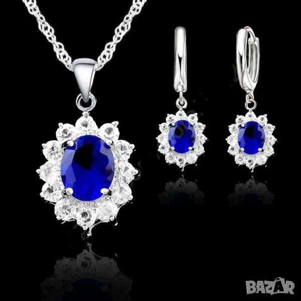 Комплект обици и колие, син сапфир и искрящи кристали. снимка 8 - цена 12.99 евро