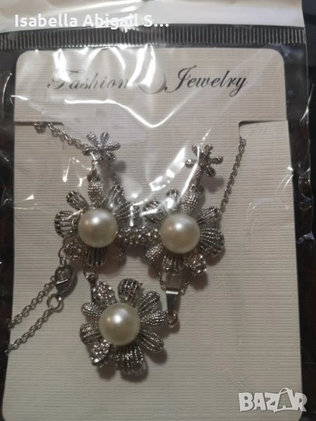 Комплект от обици и колие от медицинска стомана 316Л с перли и искрящи кристали. снимка 6 и 7 цена 12.00 евро