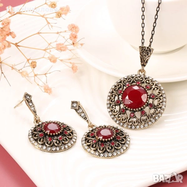 Винтидж комплект обици и колие с червен цирконий. снимка 15 и 16, цена 13.99 евро