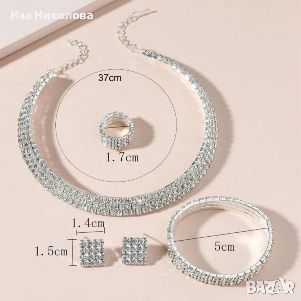 Бижутериен комплект състоящ се от пръстен, обици, колие и гривна, бижутерска сплав, непредизвикваща алергии. снимка 11 и 12 цена 13.99 евро