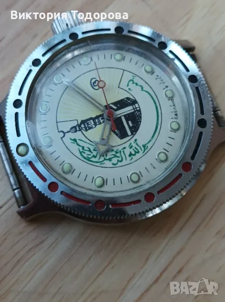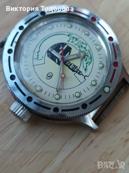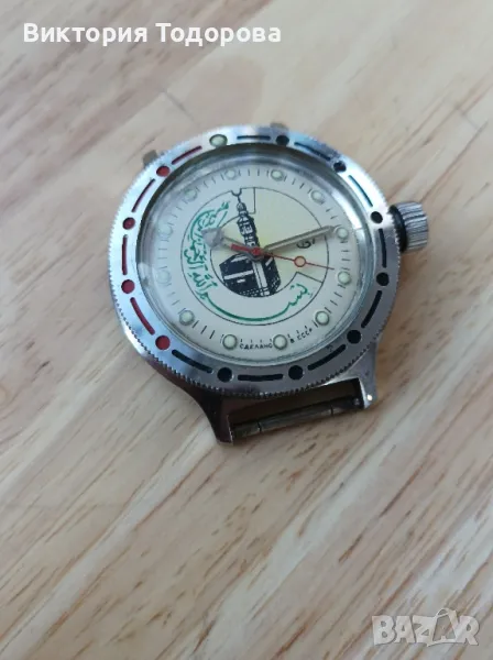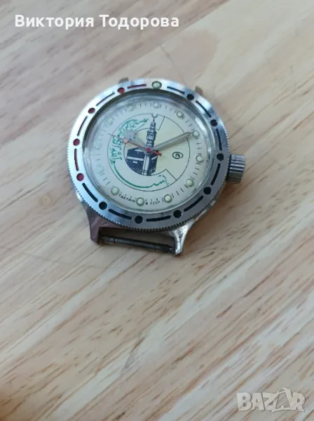 Здравейте! Продавам Восток Амфибия с арабски мотиви произведен в СССР. Считам, че всичко по часовникът е автентично. Работи, но не е обслужван във времето на притежание от мен. Има драскотини по стъклото. Коронка на винт.