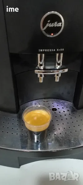 Кафеавтомат / кафемашина - робот. НОМЕР 19. Jura Impressa XF50. Type Schwarz Black Noir. Работи с мляно и кафе на зърна. По-голямо казанче за вода. По-голям съд за отпадното кафе. Внос от Германия. Декалцирана. Проверена. Работеща. С видеоклип как работи.