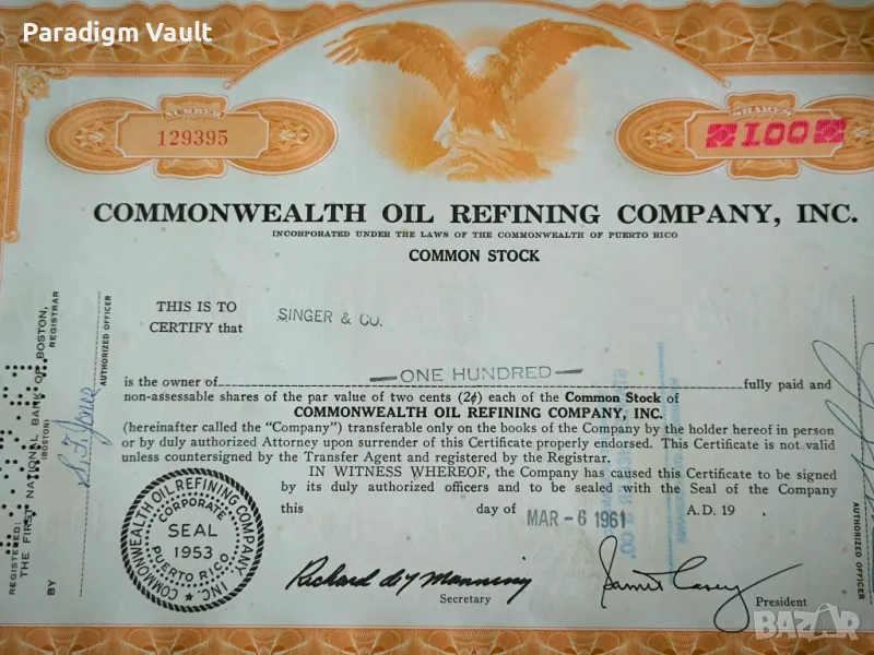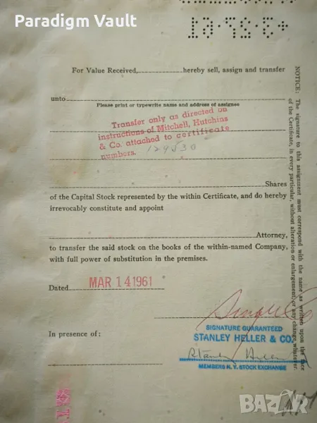 Сертификат за притежание на акции от 1961г.