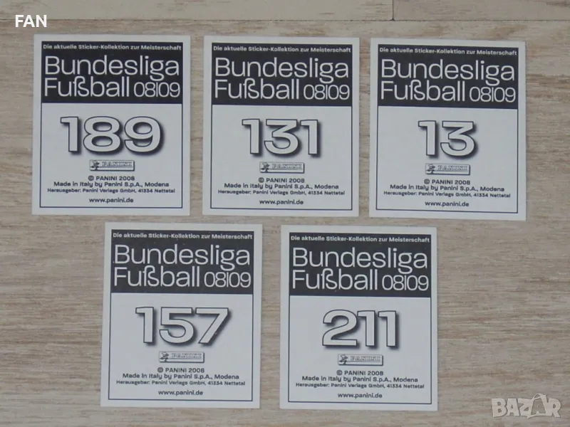 Предлагам 5 бр. блестящи стикери Панини на футболисти от Бундеслигата за сезон 2008/09.