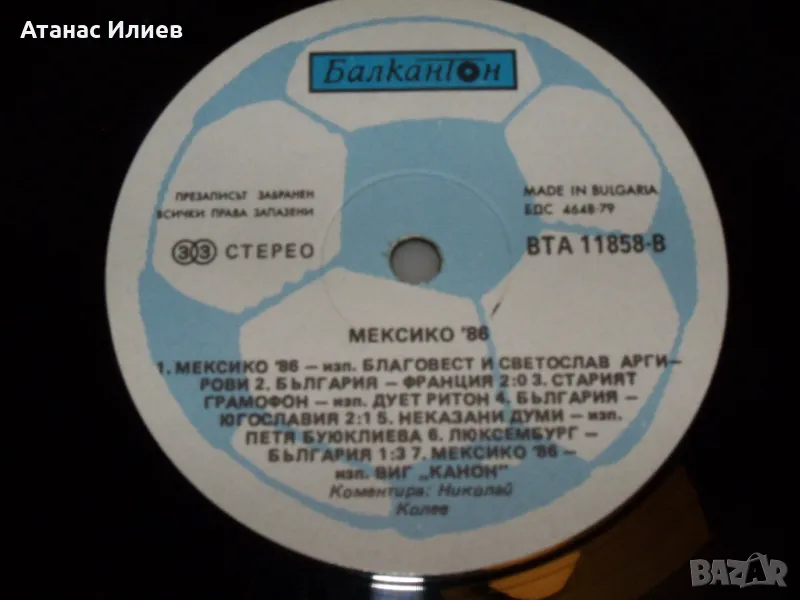 Грамофонна плоча посветена на участието ни на световното първенство по футбол в Мексико 1986г.