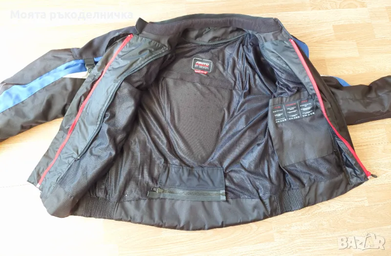 Здравейте, продавам текстолно мъжко мото яке Akito. Якето има протектори на гърба, раменете и лактите. Има дебела подплата, която се слага и маха чрез цип.