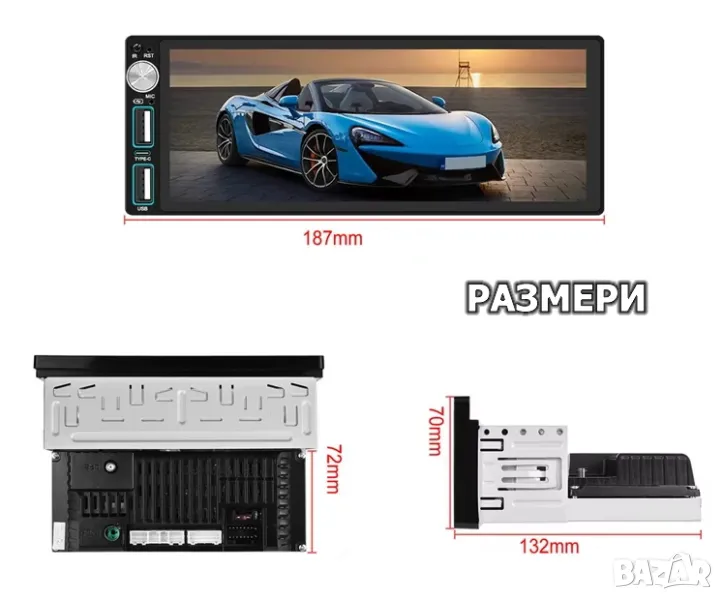 1-Din 6.86” 1280*480 , 4/64GB 8-ядрена универсална мултимедия с Android 13