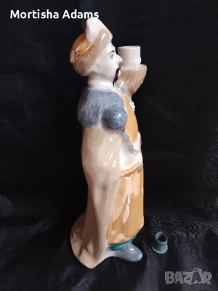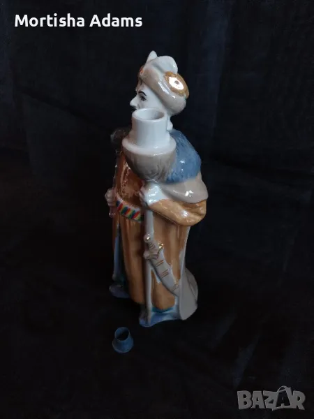 Фигура на Богдан Хмелницки и същевременно бутилка за водка, производство на Полонский фарф. завод (художествена керамика), период 1973- 1991г. Височина- 27,5см., вместимост- 700мл. Отлично състояние, като изключим малка пукнатина, която не пречи нито на визията, нито на употребата. Отбелязана е на една от снимките.