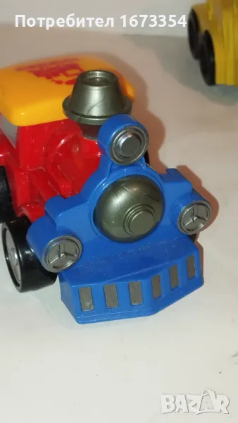 Всички пластмасови ,цена за 2+3 ( автобус и булдозер с куче 15.00 лв за двете заедно) някой са нови не използвани
