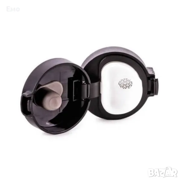 Винтово затваряне със силиконов ринг на капака за по-плътно прилепване и за да няма протичане с бутон за лесно отваряне и затваряне за удобно отпиване.