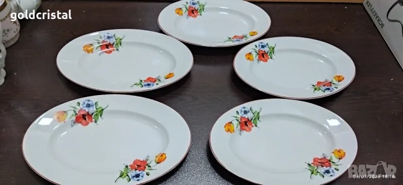 Стар български порцелан чинии елипси макове лалета 5 бр без забележки сервиз комплект сет лот ретро арт декор винтидж колекция стари старинни антикварни предмети обзавеждане за дома и семейството подходящи за подарък за ценители и колекционери