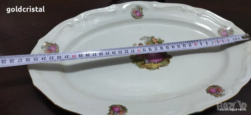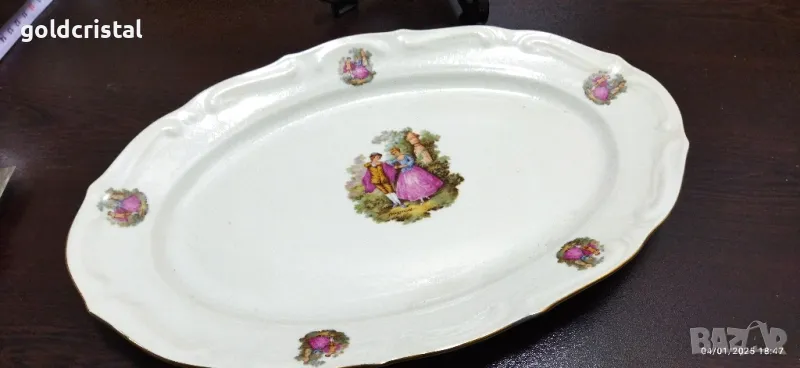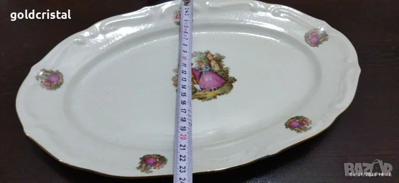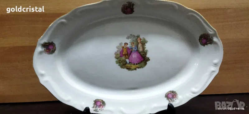 Стар български порцелан Изида плато елипса Ромео и Жулиета неизползвано с фабрична забележка сервиз комплект сет лот ретро арт декор винтидж колекция стари старинни антикварни предмети обзавеждане за дома и семейството подходящи за подарък за ценители и колекционери