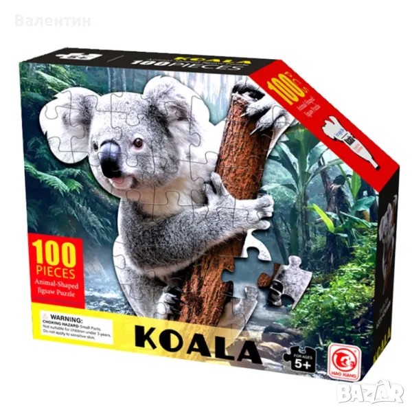 Комплектът съдържа 100 картонени елемента на пъзел.