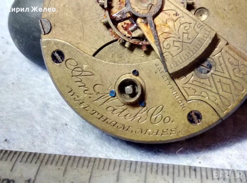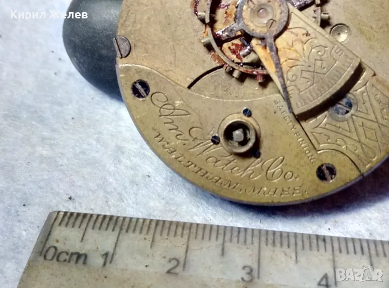 Am. Watch Co. WALTHAM. MASS. МЕХАНИЗЪМ от СТАР РЯДЪК КОЛЕКЦИОНЕРСКИ МОДЕЛ ДЖОБЕН ЧАСОВНИК САЩ 14525