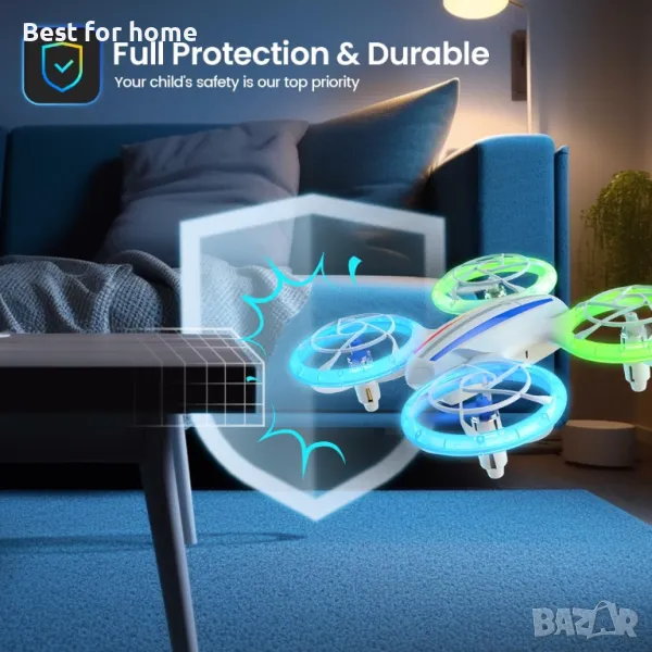 Безопасен полет за деца: Структурираният стил и ЧЕТИРИ предпазители за витла с цялостно покритие осигуряват сигурен полет, който предпазва децата ви и избягва телесни наранявания от въртящи се витла. Висококачествен ABS материал, който издържа на безброй сблъсъци или изпускания. Много издръжлив и надежден дрон за деца и начинаещи.