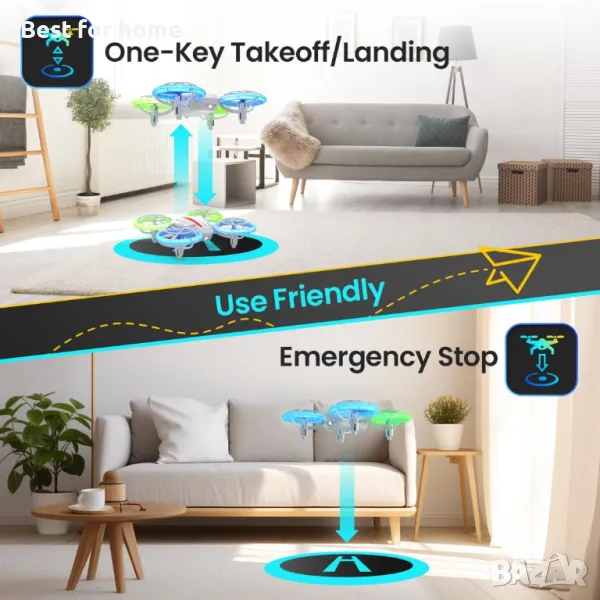 Лесен за използване: 1: Можете просто да излитате/кацате дрона с един бутон. 2: Три скорости, които можете да изберете, без значение начинаещи или опитни играчи. 3: Нямате притеснения относно идентифицирането на упътванията в режим без глава. 4: Функцията за задържане на надморската височина позволява на вашия дрон да кръжи автоматично във въздуха. (Дори и ръцете ви да са далеч от джойстика) Всички тези функции правят дрона изключително удобен за начинаещи.